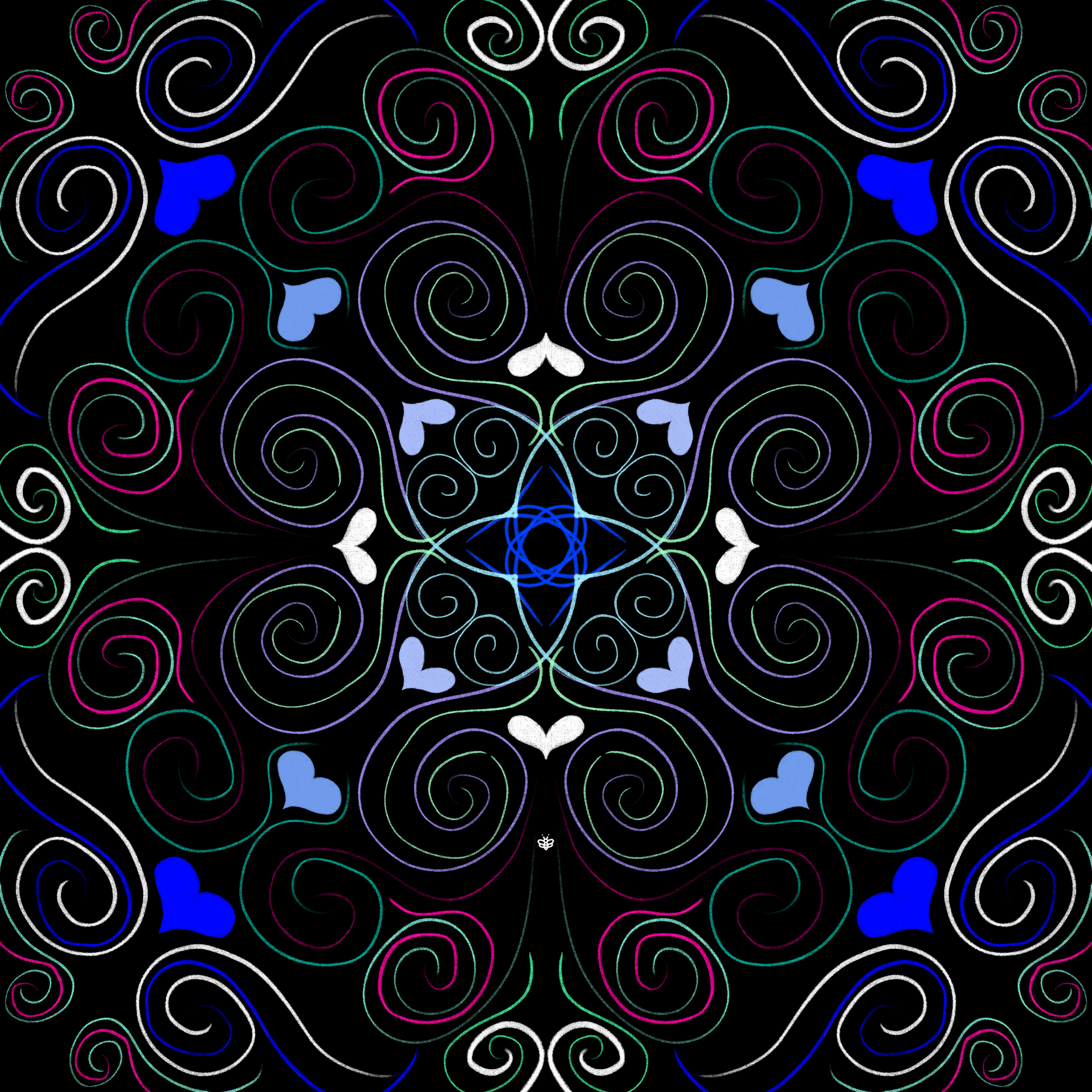 양육은 사랑없이는 불가능하기에 하트로 표현했으며, 다른 무늬들은 물의 흐름을 표현했습니다. 또한 물의 흐름을 일정하지 않기에 다양한 색으로 표현했으며, 색이 잘 보이기 위해 배경은 검은색을 선택했습니다.